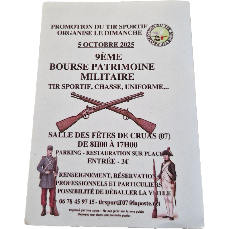 Bourse militaria patrimoine militaire armes anciennes .Achat.Vente.Echange.Expertise organisée par le tir sportif de cruas