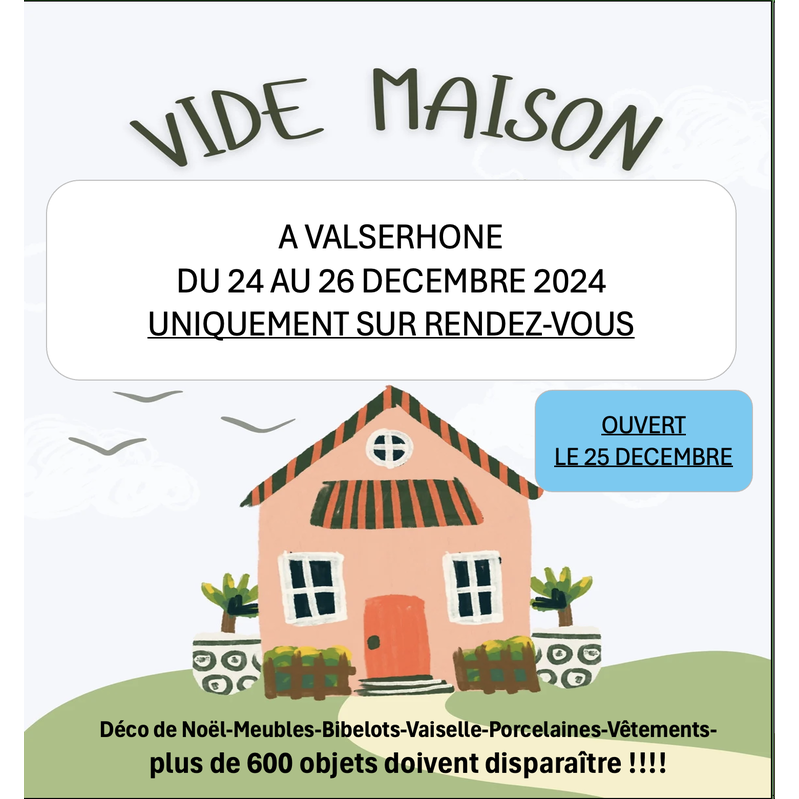 Suite a la vente de notre maison nous mettons en vente la totalité de son contenu, 600 objets et meubles à vendre.