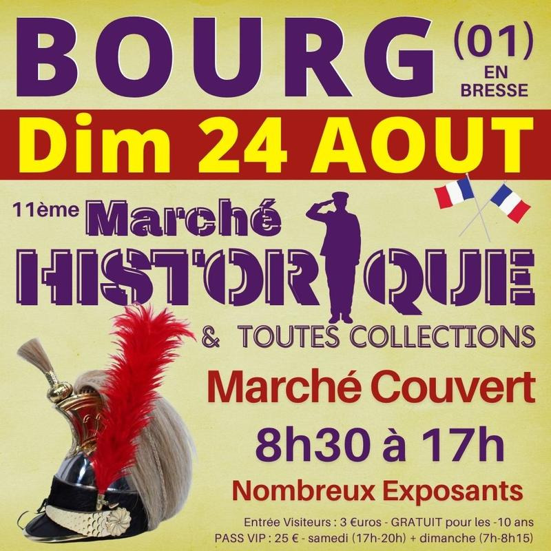 Ne manquez pas le 11ème marché historique & toutes collections - bourg en bresse 2025. L’occasion de nourrir une passion sur le thème de l'antiquités militaire de l'époque napoléon à la 2ème guerre mondiale au gré des acquisition d’armes de collection, uniformes, casques, insignes, livres, baïonnettes, figurines et autres petits objets sur le thème de l’armée, police et pompiers en présence d’une trentaine d’exposants… le grand public pourra prendre part à cette 11ème édition qui s’installera au marché couvert de bourg en bresse (01). Les organisateurs permettront aux passionnés de découvrir l’objet idéal pour compléter leur collection personnelle ou simplement de revivre l’histoire des objets exposés. . *** dimanche 24 aout 2025 *** de 8h30 à 17h . Lieu : marché couvert allée des glorieuses place du champ de foire 01000 bourg en bresse . Organisation : tandem events contact : renseignements . Entrée visiteurs : - 3 €uros (uniquement sur place) - gratuit pour les - 10 ans billet d'entrée donne accès également au broc land geek (halle a) . Pass vip - accès avant ouverture officielle : 25 € entrée déballage marchand - donne accès avant l'ouverture officielle au public achat billetterie uniquement sur weezevent https://my.weezevent.com/BOURG2025 . Buffet - buvette . Merci de partager l'évènement : https://www.facebook.com/events/1399846081056090/ . Bon salon à tous..