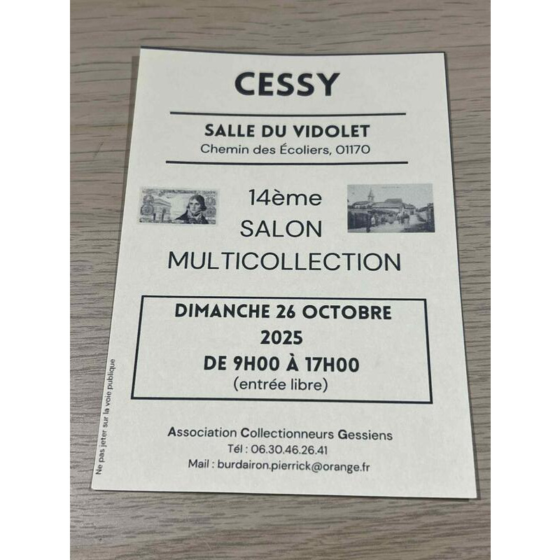 L' acg ( association des collectionneurs gessiens) organise sa 14 -ème grande bourse multi collection le dimanche 26 octobre 2025 organiser 1 fois par an dans la salle du vidolet a cessy (01170)