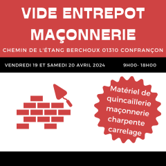 Matériel de maçonnerie, charpente, carrelage, quincaillerie, outillage, compresseur, bétonnière, dameuse, nettoyeur haute pression ,échafaudage, gaufriers anciens et divers
