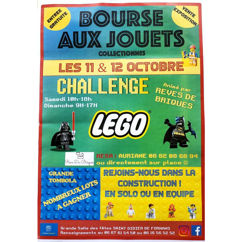 Grande bourse aux jouets sympas, pas de vetement? Que du chouette jouets lego, playmo, dinky, norev, meccano etc... Plein d aniations sur place challenges lego, circuit karting, buvette, restauration, possibilite de repas sur place, grande tombola