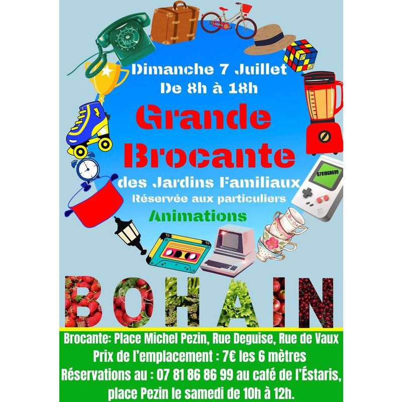 Les jardins familiaux de bohain organisent leur grande brocante annuelle le dimanche 7 juillet 2024.
