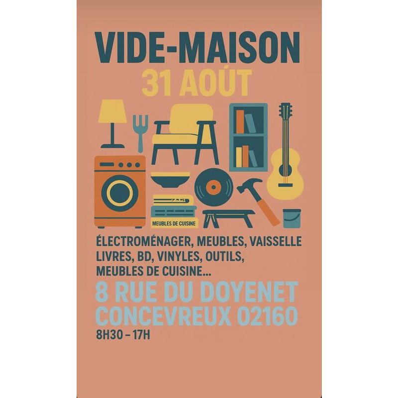 Matériel de cuisine, meubles, objets de déco, vaisselle, outils etc