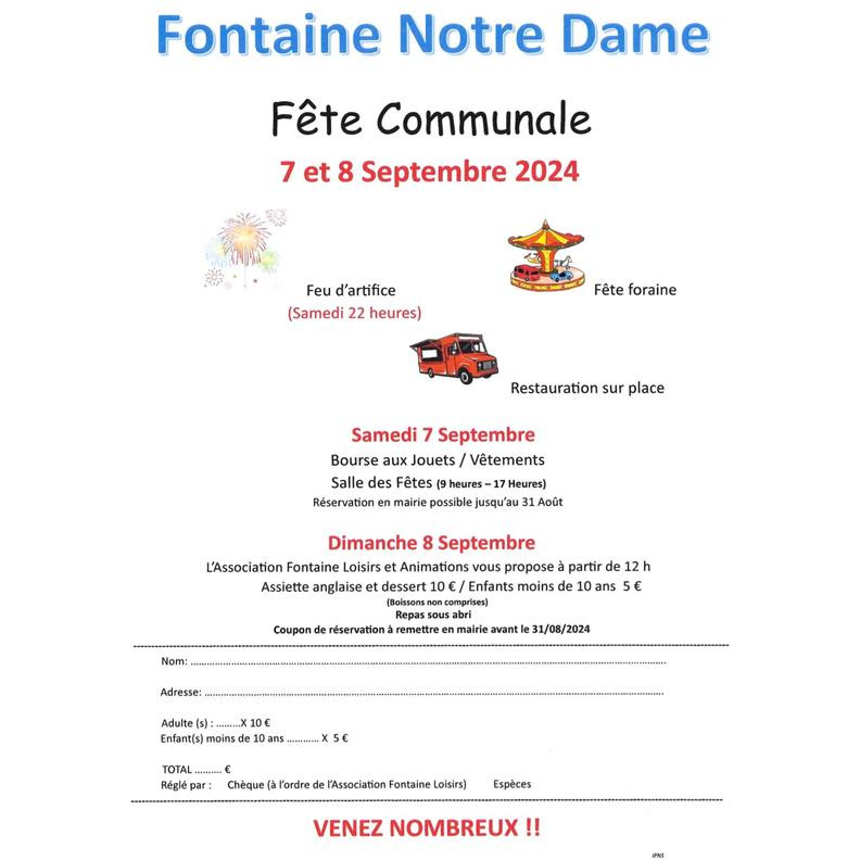 Pendant la fête communale une bourse aux jouets et aux vêtements est organisée de 9h à 17h à la salle des fêtes de fontaine-notre-dame 02.