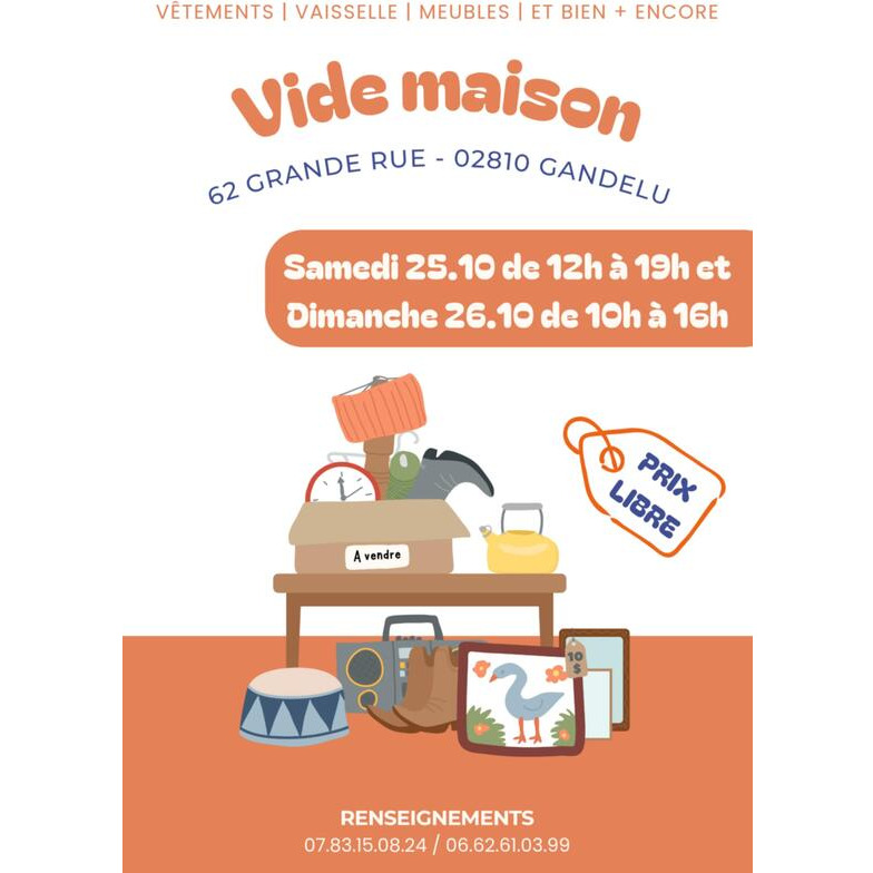 Ventes de vaisselle, bibelots, décoration, électroménager, vêtements, ...