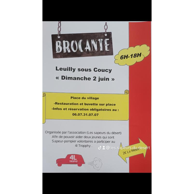 Nous sommes deux jeunes pompiers volontaires de soissons participants au 4l trophy de l'édition 2025. Pour pouvoir financer notre projet, nous organisons notre toute première brocante n'hésitez pas à partager!!!
