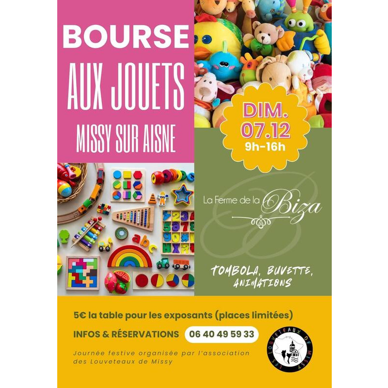 Pour la 3eme année, l’association des louveteaux de missy organise une bourse aux jouets sur le magnifique lieu de réception : la ferme de la biza.