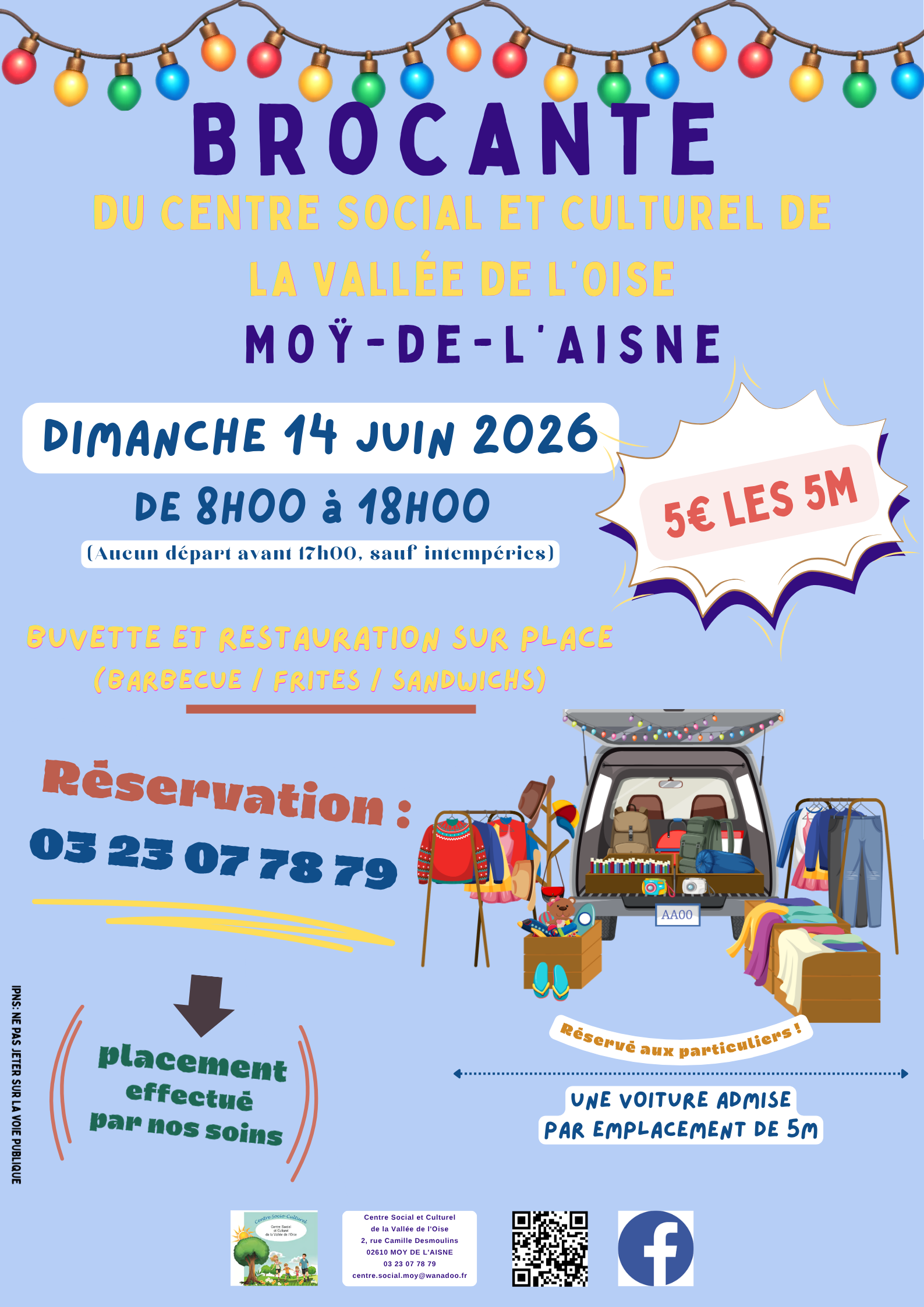 Buvette et restauration sur place (Barbecue, frites, sandwichs, crêpes, glaces, friandises, boissons soft et bière)