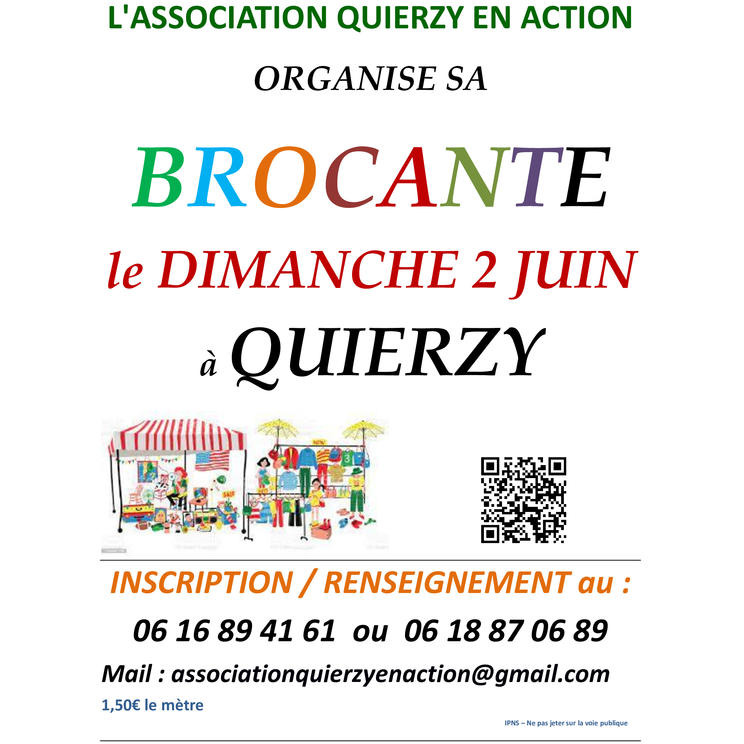 L'association quierzy en action organise sa brocante le dimanche 2 juin à la salle polyvalente de quierzy - rue henri ricot