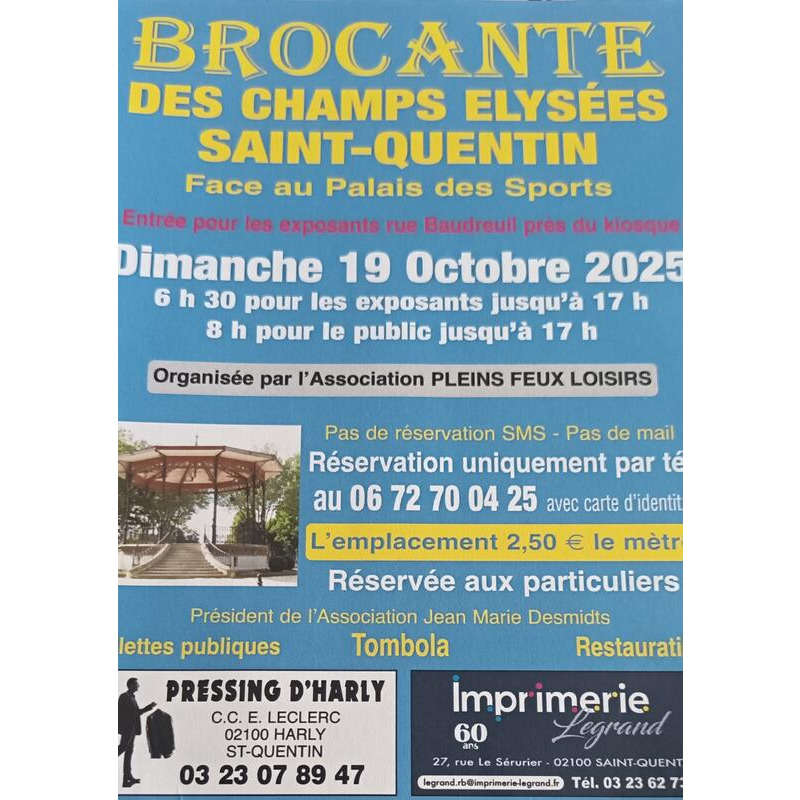 Brocante st quentin face au palais des sports. Entrée pour les exposants rue de baudreuil près du kiosque