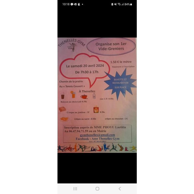 Bonjour thenelles gym effectue sa première brocante ..N hesitez pas a vous y inscrire et (ou) venir y faire un tour .. L association compte sur vous