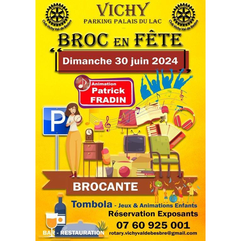 Brocante, vide grenier avec animation musicale, dj fradin , restauration, journée d'animation famille avec de nombreuses attraction pour les petits et les grands.