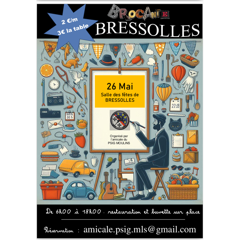 Brocante réservée aux particuliers en intérieure et extérieure.