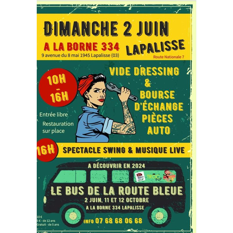 s’est associée à l’association “les old timers” présidée par fabrice degard pour créer un nouveau spectacle inédit autour de la danse swing dans un univers vintage , “le bus de la route bleue”.Suite au succès de leur précédent spectacle “un amour de juke box” joué en 2022-2023 dans le cadre de l’embouteillage puis de l’événement auto moto retro au château de lapalisse, la compagnie de danse swing a souhaité poursuivre l’aventure en proposant une nouvelle création imaginée et mise en scène par bertrand bailly, guitariste de la troupe.