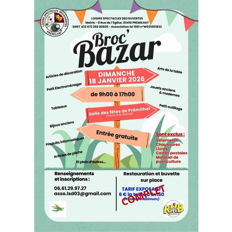Le broc’bazar de prémilhat se tiendra le dimanche 18 janvier 2026, de 9 heures à 17 heures, à la salle des fêtes de la commune. Cette journée sera l’occasion pour les visiteurs de venir chiner, découvrir de nombreux objets et faire de bonnes affaires dans une ambiance conviviale et chaleureuse. De nombreux exposants proposeront une grande variété d’articles tels que des objets du quotidien, de la décoration, de la vaisselle, des petits outillages et bien d’autres trouvailles originales.
