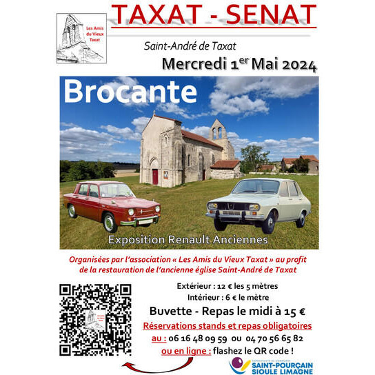 Brocante organisée par les amis du vieux taxat pour la sauvegarde et la restauration de la vieille église de taxat du XII avec peintures et fresques.