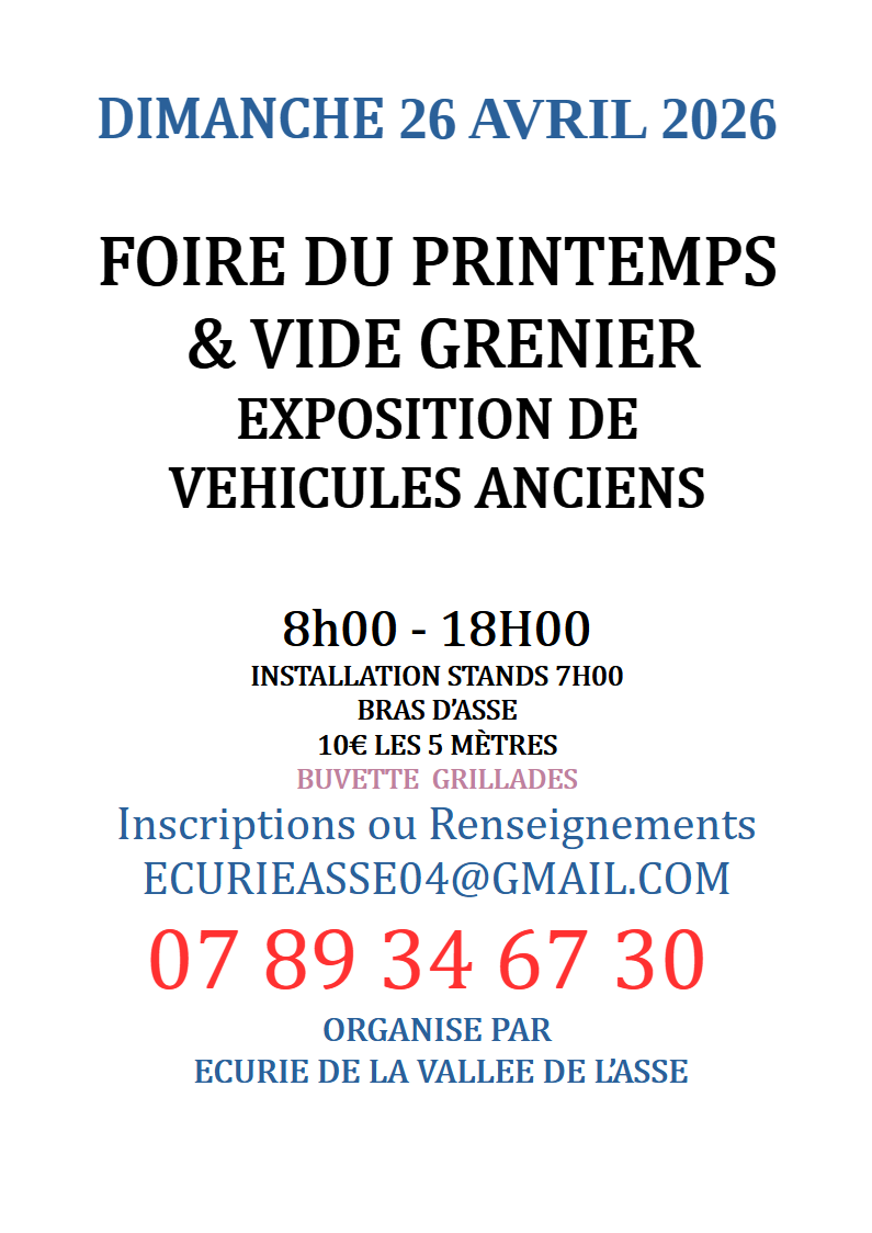 Fête du printemps vide grenier, foire artisanal produits régionaux et expositions de véhicules anciens