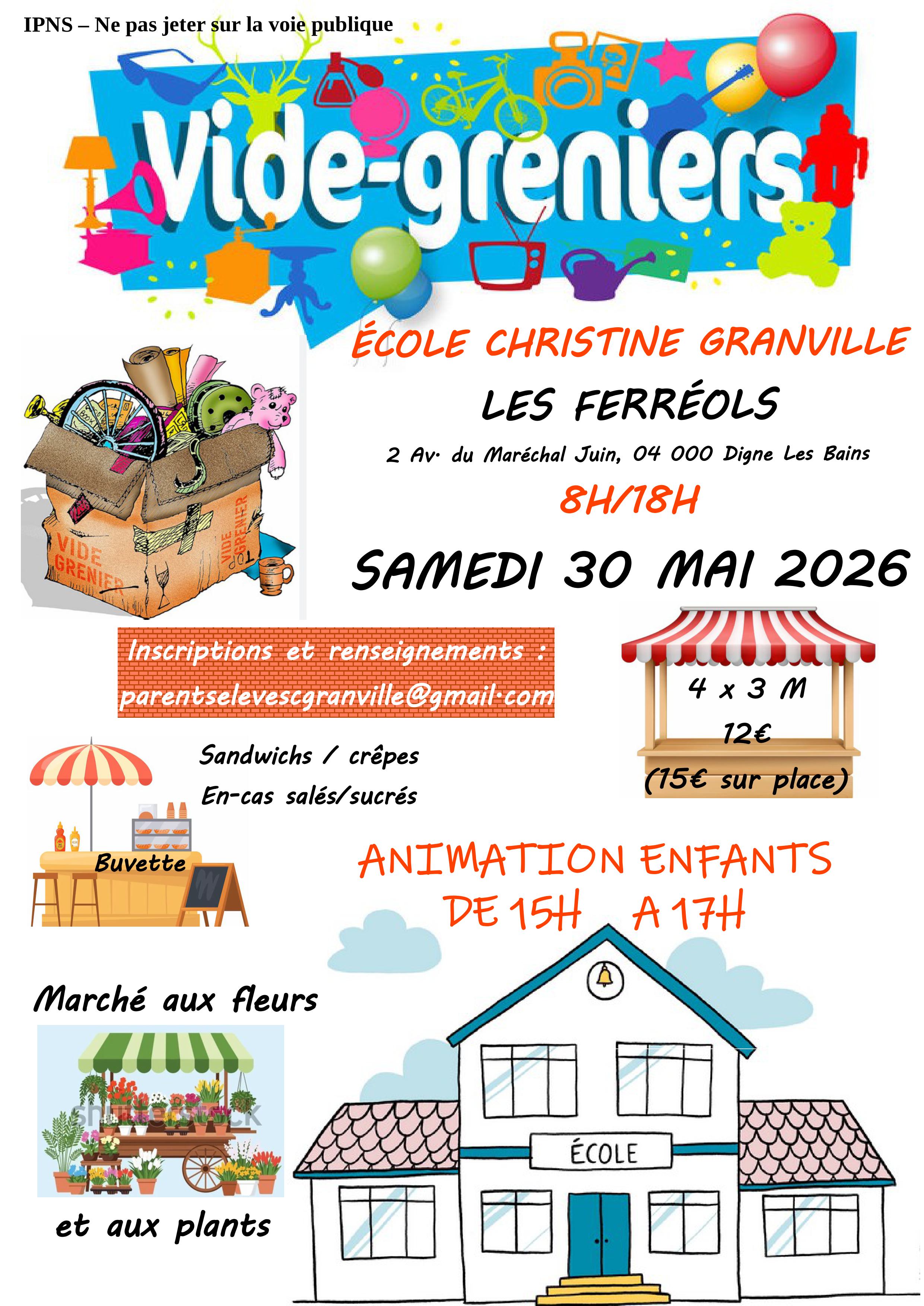 Vide grenier et marché aux fleurs/plants au profit de l'école C.Granville les Ferréols Digne