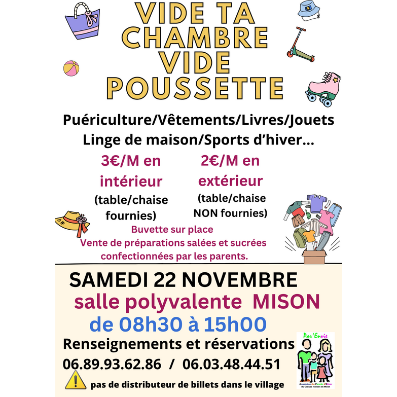 L'ape de mison organise son 1er vide ta chambre/ vide poussette en salle de l'année.