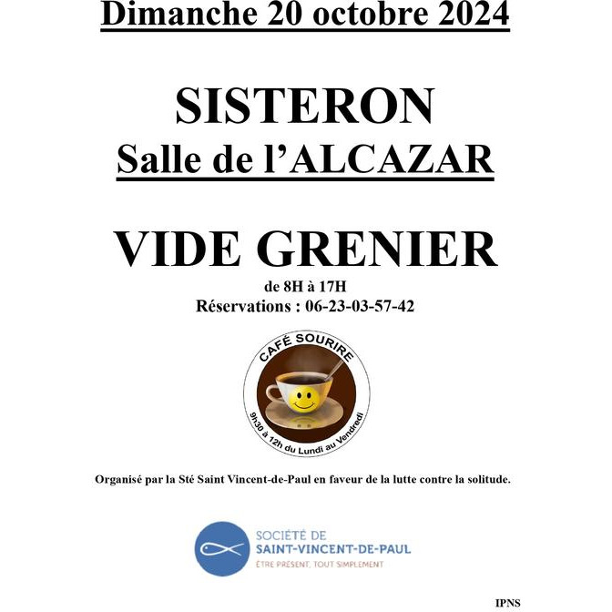 Vide-grenier organisé par le café sourire et la société de saint vincent de paul sisteron en faveur de la lutte contre la solitude