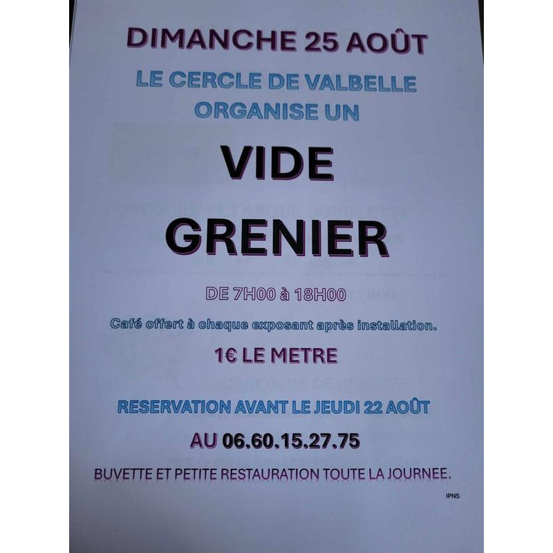 Dimanche 25 août, le cercle de valbelle organise un vide grenier, brocante de 7h à 18h. Buvette et petite restauration sur place.