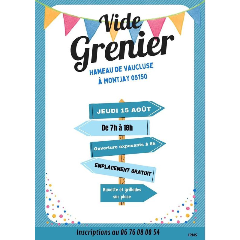 Vide grenier de montjay organisé par le comité des fêtes. Adresse : vaucluse haute