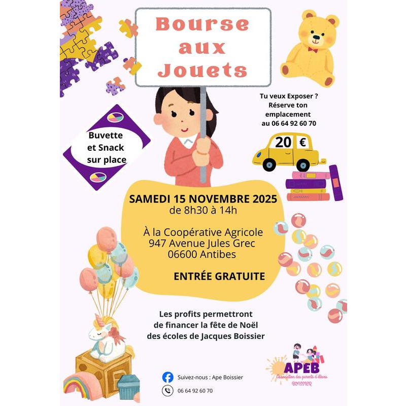 Bourse aux jouets de l'association des parents d'élèves des écoles jacques boissier à antibes.