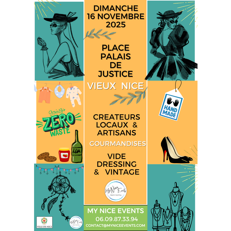 L'événement green par excellence à nice côte d'azur revient à la rentrée. Rdv au coeur du vieux nice, le dimanche 16 novembre pour une journée de fête ! Venez rencontrer les nombreux createurs locaux, artisans, artistes (dessins, illustrations, peintures), artisans d'upcycling et de customisation (décoration, objets insolites, objets de décoration, papeterie, couture, créations en crochet, céramistes ...), ainsi que les producteurs des gourmandises locales à ne pas manquer ! Sans oublier de visiter le méga vide dressing, avec des #friperies, #depotvente, vêtements vintage, bijoux et accessoires de mode ... Toute la mode de luxe de seconde main à découvrir en 1 seul lieu ! Les détails: entrée libre et gratuite toute la journée pour le public ! Dimanche 16 novembre 9h - 17h ou ? Place du palais de justice, vieux nice . Présences d'exposants professionnels et quelque particulier sélectionné pour la partie vide dressing. Une journée de fête locale, fashion et éco-responsable s'annonce ! A vos agendas, on vous attend nombreuse et nombreux ! @myniceevents