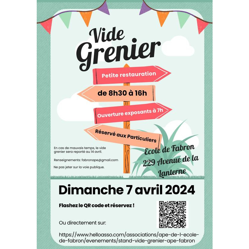 L apde de fabron organisera un vide grenier le dimanche 7 avril de 8h30 à 16h.