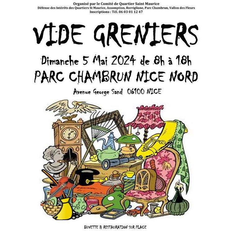 Notre comité de quartier organise deux vide greniers par an dans les jardins du parc chambrun. Ce sont des manifestations à l'échelle humaine, c'est à dire, relativement petites, l'espace l'exige, mais qui sont toujours animées et bon enfant. Le jardin avec ses cèdres centenaires est magnifique. Un petit rappel de satisfaction, la scène du cours de conduite du film 'flic ou voyou' (1979) a été tournée dans ce jardin avec la descente en marche arrière de la splendide volée d'escaliers qui débouche avenue chateaubriand. Vous y trouverez également sur place buvette et restauration.