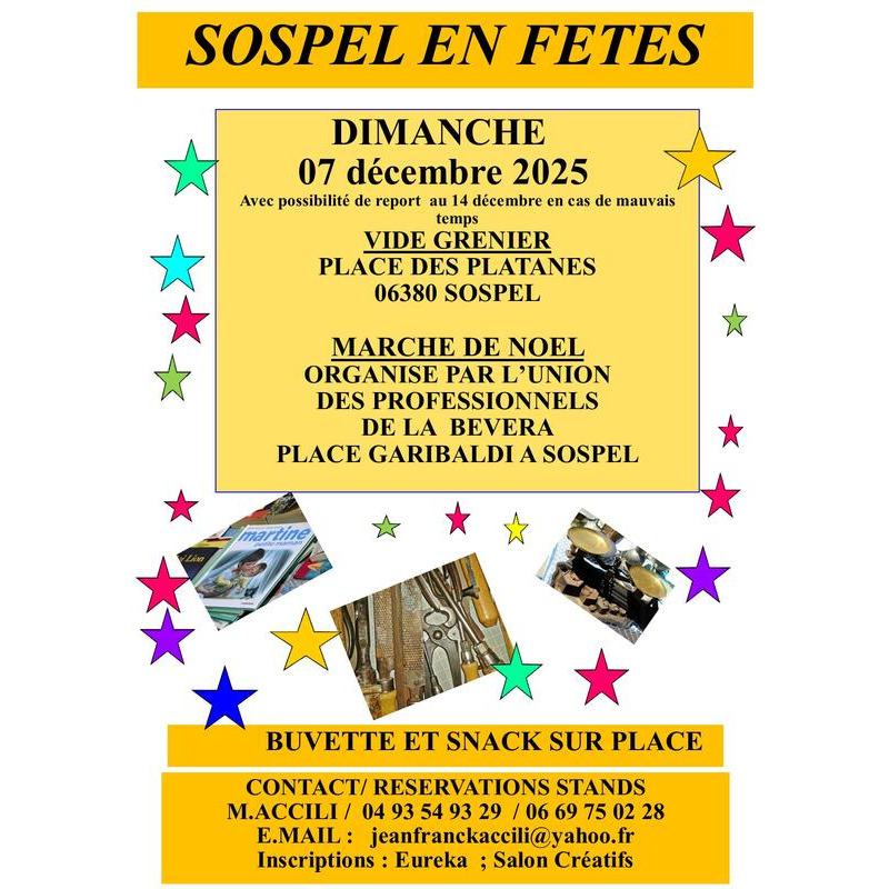 Vide grenier ,organisé par sospel en fêtes en même temps que le marché de noël organisé par l'union des commerçants de la bévéra.