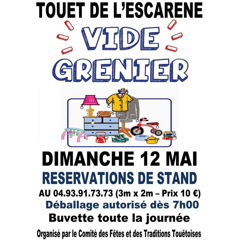 Le comité des fêtes et des traditions touëtoises organise un vide-greniers le dimanche 12 mai sur la place de l’église. Buvette toute la journée.