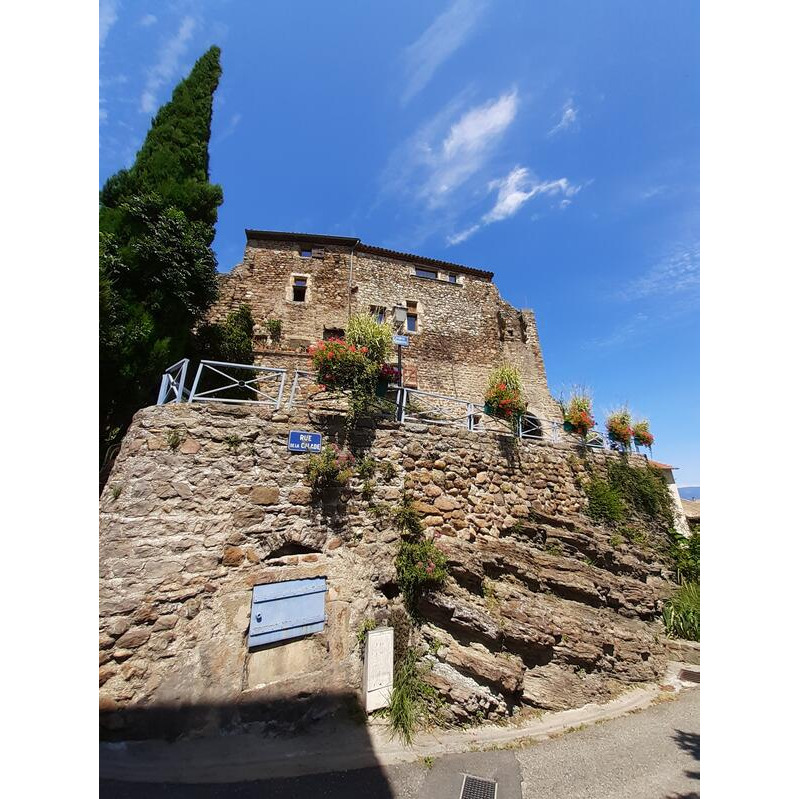 prendre l'angle de la fleuriste , rue paul bertois, vers la rue du péage , au fond, tourner à droite , puis à gauche, et dans la rue des baillis , garez votre voiture et continuez à monter à pied , en suivant le "sentier du troubadour" par fléchage ,
