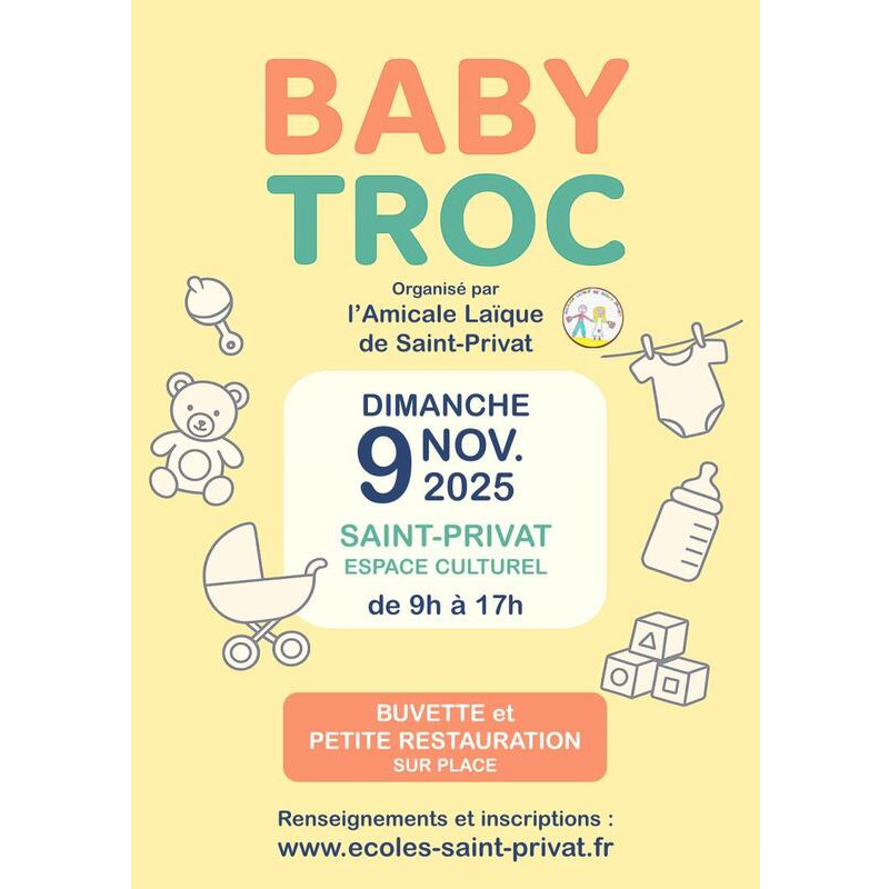 comme chaque année, l'amicale laïque de saint-privat organise son traditionnel baby troc !