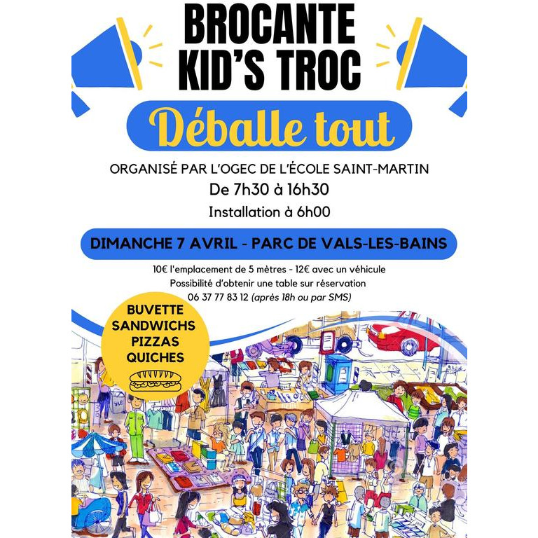 L'ogec de l'ecole st martin de vals les bains organise un vide-maison où tout type d'objets personnel peut être présenté : un mélange entre vide dressing, brocante, kid troc, un vrai déballe tout
