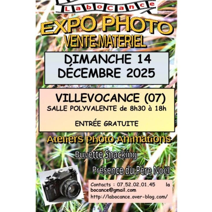 Le club photo labocance organise sa 3ème foire photo/cinéma à villevocance (07) à 10 minutes d'annonay.