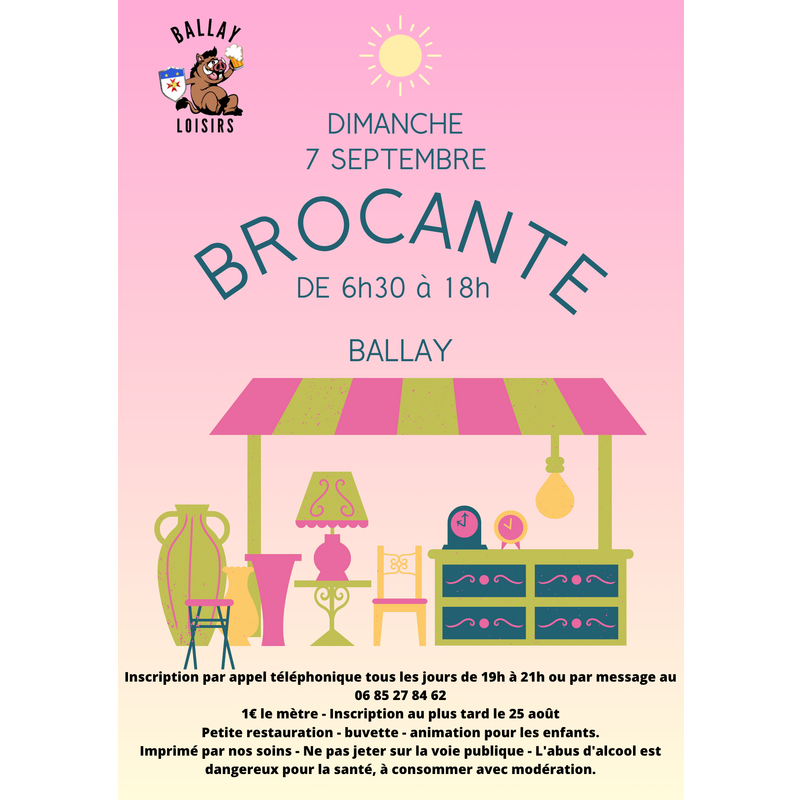 L'association ballay loisirs organise une brocante le 07 septembre 2025 de 06h30 à 18h00.