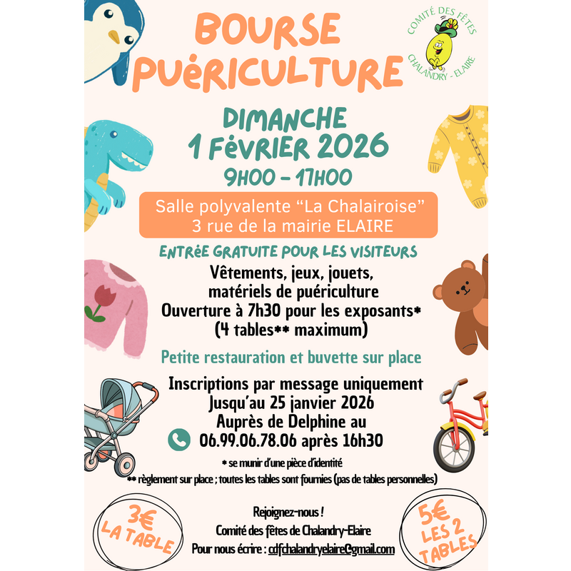Bourse puériculture, vêtement, jouet, jeux, matériels de puériculture...