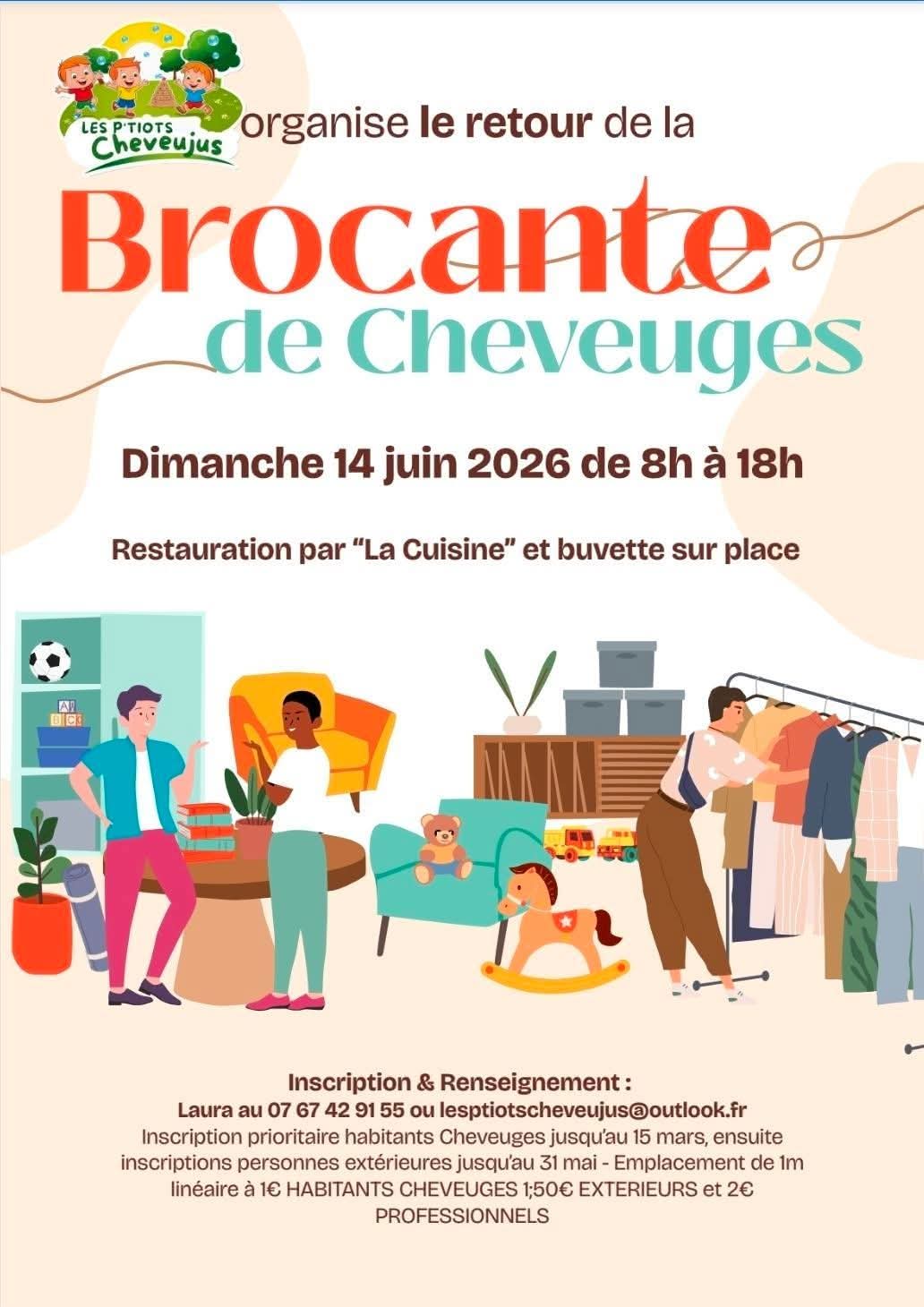 Retour de la brocante à cheveuges le dimanche 14 juin 2026 de 8h à 18h !