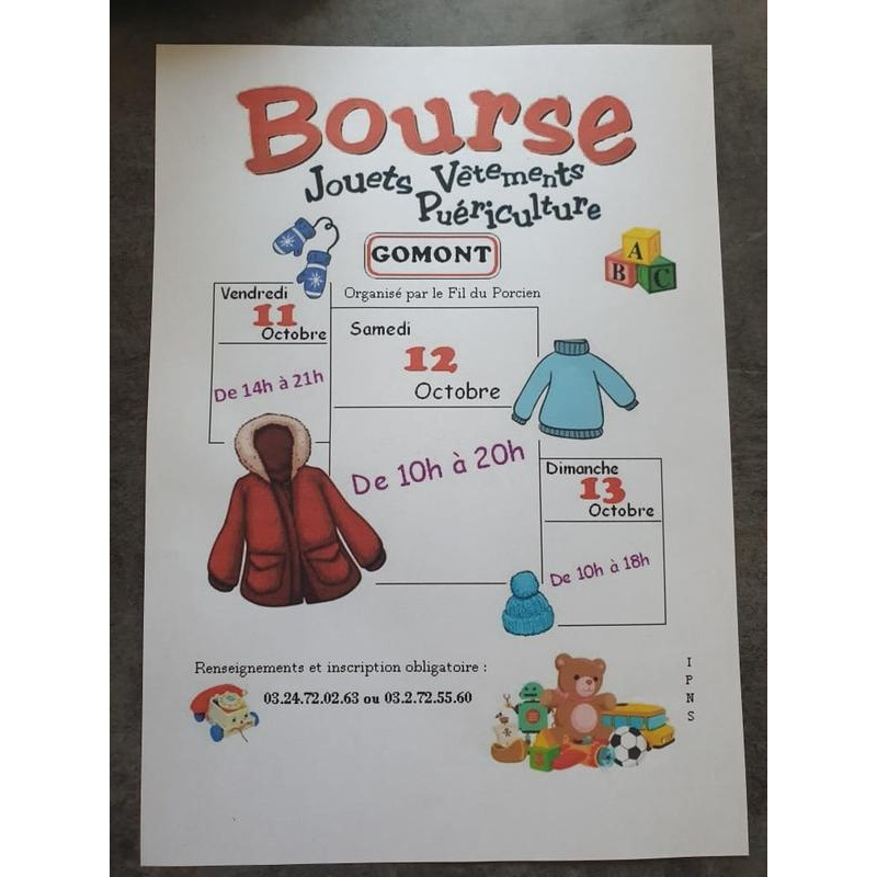 Bourse aux jouets, vêtements et puériculture organisé par le fil du porcien
