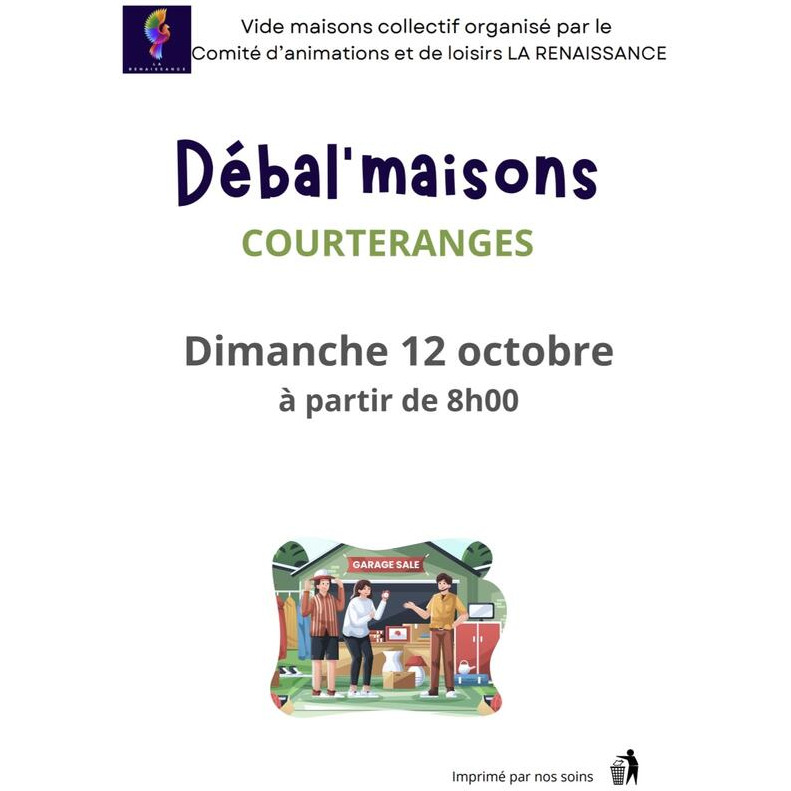 Le comité des fêtes de courteranges organise son traditionnel grand debal’maison où plusieurs dizaines de maison vous ouvrent leurs portes pour faire de bonnes affaires