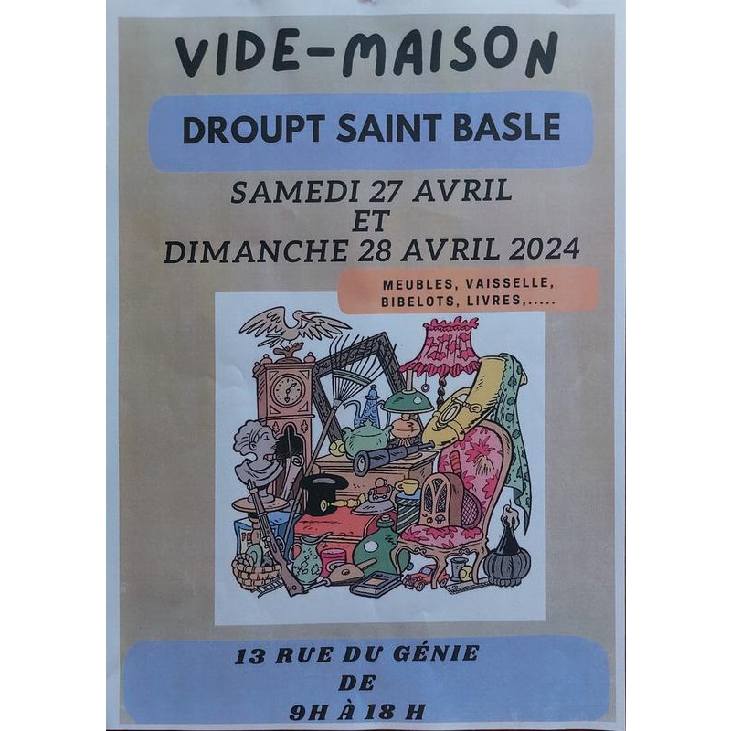 Vide maison meubles, vaisselle, bibelots, livre...