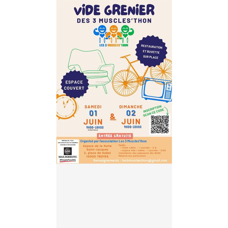1er vide grenier organisé par l'association les 3 muscles'thon au profit des enfants atteints de la myopathie de duchenne.
