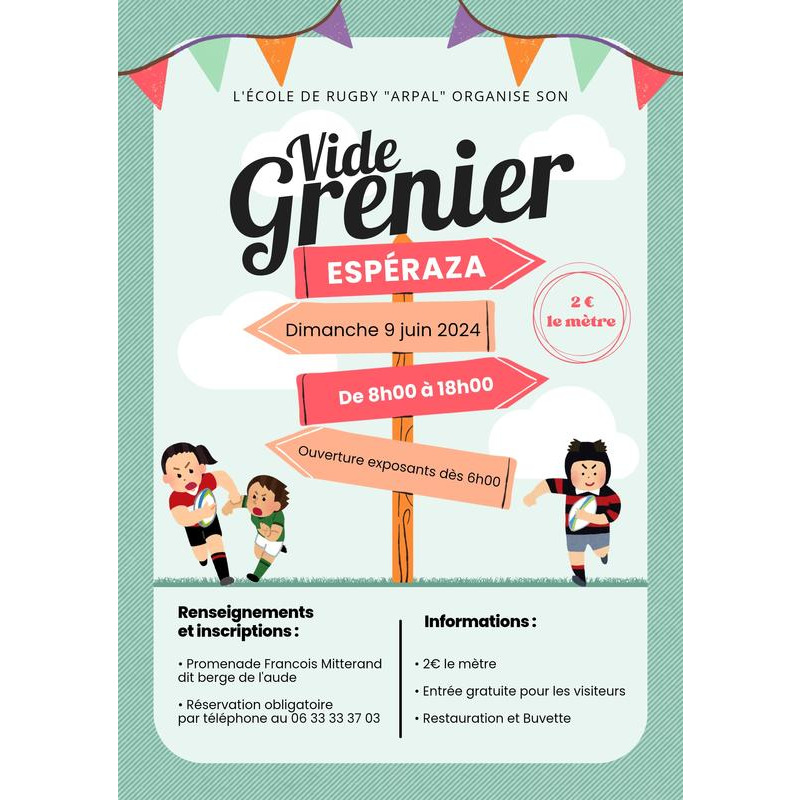 L'école de rugby arpal XV organise son vide grenier, le dimanche 09 juin de 08h00 à 18h00.