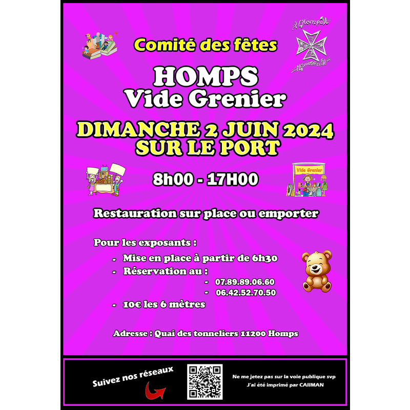 Vide-greniers organisé par le comité des fêtes de homps (11) sur le port de homps.