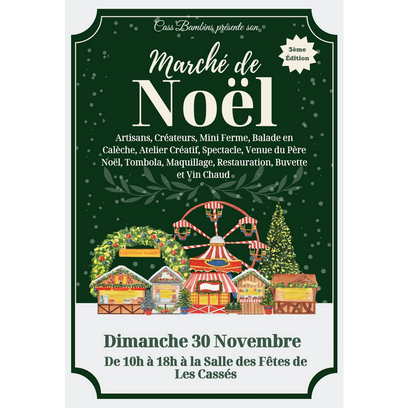 L’association cass'bambins organise un marché de noël dans la salle des fêtes, le dimanche 30 novembre 2025 de 10h à 18h