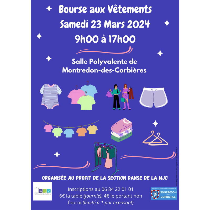 Emplacements numérotés sur tables (1m70/80 fournies)avec ajout d'(1emplacement sur portants possibles, non fournis).