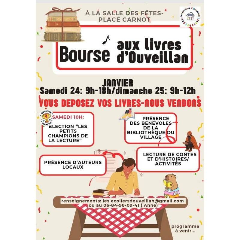 Bourse aux livres organisée par l'association des écoliers d’ouveillan.