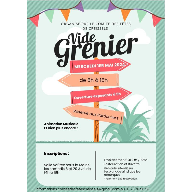 Grand vide-grenier le dimanche 19 mai organisé par le comité des fêtes de creissels